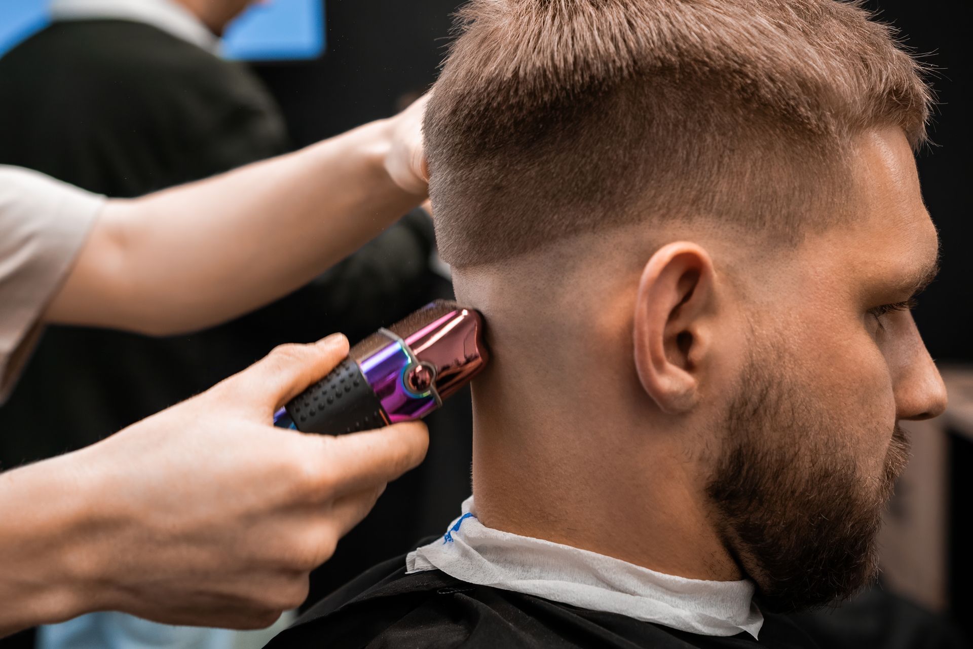 The service uses detailers and razors to redefine edges with precision, removing the fuzzy growth that blurs the hairline and creates an unfinished appearance. Forehead lines are straightened or reshaped to match the original cut, temple corners are tightened, and the neckline is cleaned to eliminate the creeping growth that makes even fresh haircuts look overdue.